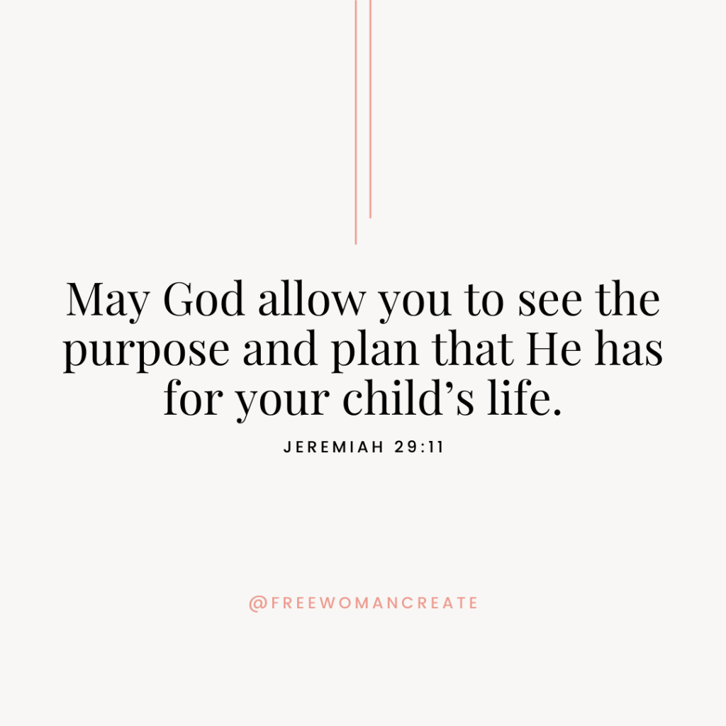 - May God allow you to see the purpose and plan that He has for your child’s life. (Jeremiah 29:11)