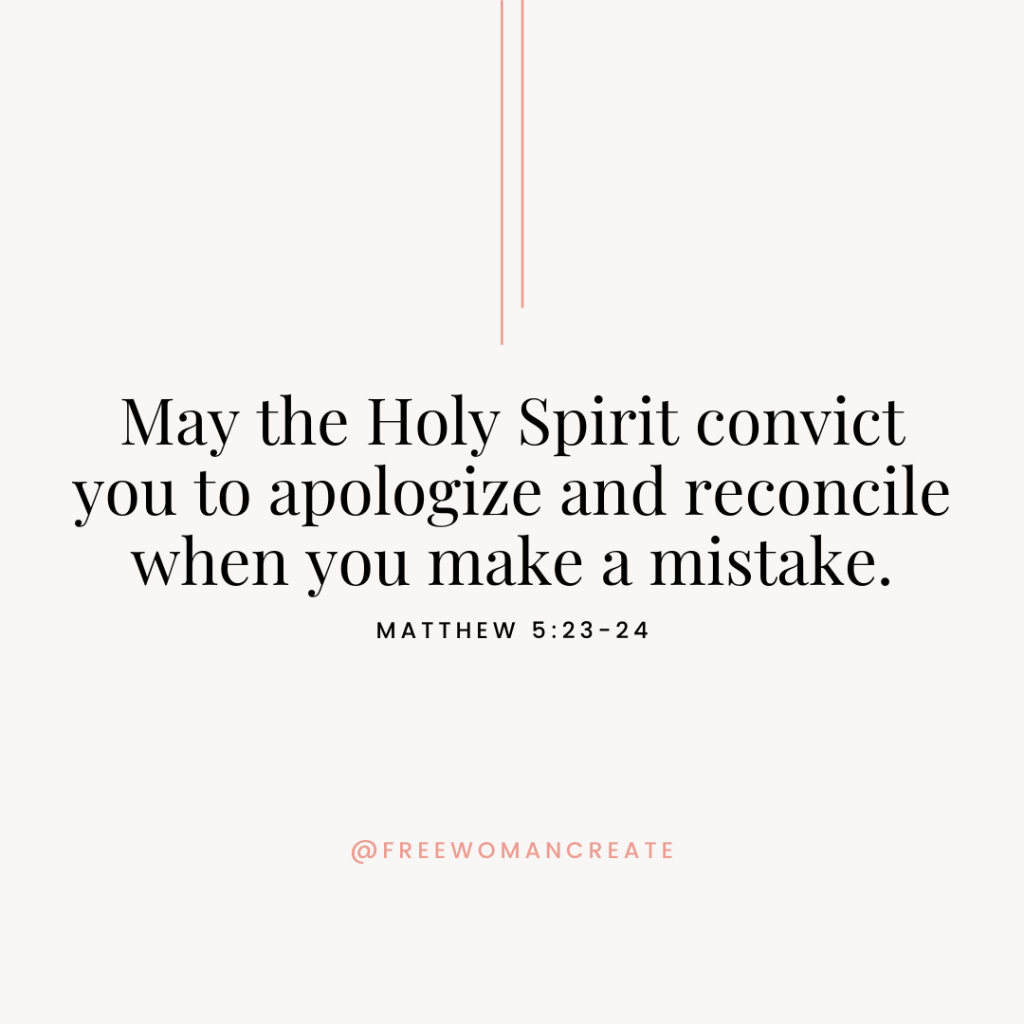 - May the Holy Spirit convict you to apologize and reconcile when you make a mistake. (Matthew 5:23-24)