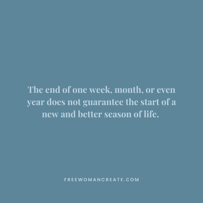 God’s timing is not our own, so we cannot place a time limit on a season of hardship. The end of one week, month, or even year does not guarantee the start of a new and better season of life. We may very well remain in the same season or enter a more difficult one.